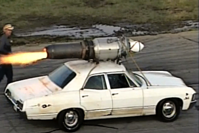 Perhaps the car bends space around it instead of moving – or perhaps it has a jet engine built on it (like the one below :-) :